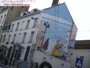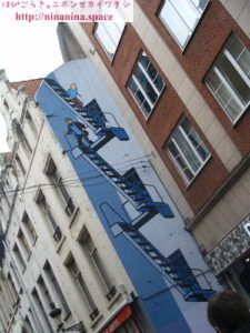 ホテルからグランプラスへ向かってミディ通り(Rue du Midi)を歩いていると、昨晩には気づかなかったコミック壁画が。