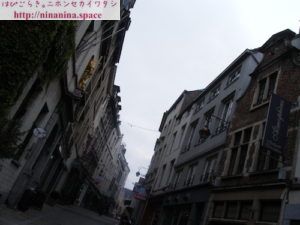 アレクシアン通りは大通りが曲がるとオート通り(Rue Haute)になりますが、そちらへは行かず、曲がらずまっすぐロルビーク通り(Rue de Rollebeek)という細い通りを進みます。
