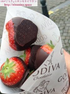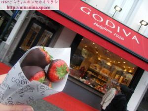 日本の物より酸味が強いイチゴにしっかり甘いゴディバのチョコレートが絶妙にマッチして美味なのはもちろん…