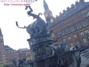 市庁舎前は広場になっていて、ドラゴンの泉・Dragespringvandet(The Dragon Fountain)があります。