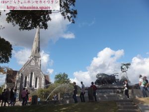 ちなみに広場から見える丸い建物は、北欧最大のドーム建築を構えるフレデリック教会(Frederiks Kirke)。