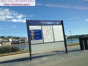 オスロ中央駅からドランメン駅までは、Lokaltog(ローカル列車)またはRegiontog(地方列車)で45分ほど。104クローネでした。