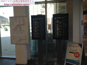 到着する電車の時刻表と出発する電車の時刻表。空港みたい。