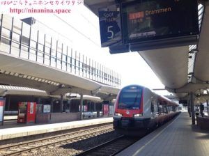 ホームでドランメン行きの列車が来るのを待ちます。