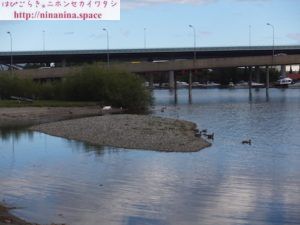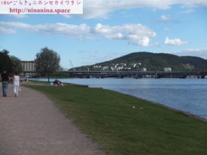 腹ごなしに、ドランメン川の河川敷を西へ散歩します。
