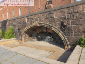 この像は坂の右側からも見れて、こちら側からだと下に噴水があります。