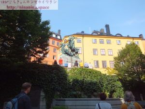 公園を抜けて右斜めに渡ったところにあるノルマルム広場(Norrmalmstorg)は、ストックホルム症候群(生存戦略として被害者が誘拐犯などと心理的繋がりを築こうとするストレス障害)という語句の起源となったノルマルム広場強盗事件の現場。
