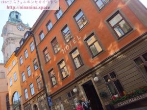 奥にストックホルム大聖堂の時計台が見えるこのホテルは、レディハミルトンホテル(Lady Hamilton Hotel)