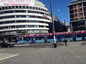 オスロの市街地中心部に到着!路面電車が走ってます。