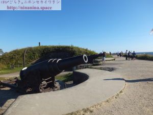 スオメンリンナいちばんの見どころ、崖沿いに大砲が並ぶクスターンミエッカです。