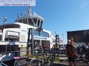 小さなフェリーが乗り場に到着。いざ乗り込みます。