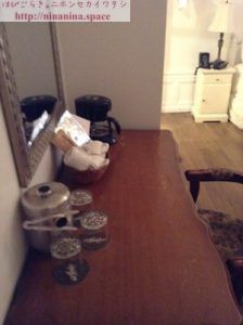 上の写真を撮影したのは部屋のドアあたりからでしたが、ドアから入ってすぐ、左手にはこちらのデスクが。