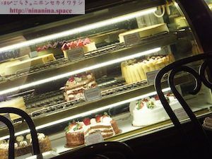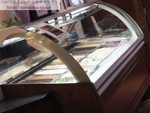 ケーキのショーウィンドウを見て注文するほか、メニュー表も見せてくれます。