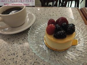 オーダーしたのは、ピースではなくスモールサイズのベリーのせニューヨークチーズケーキとコーヒー。