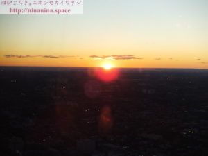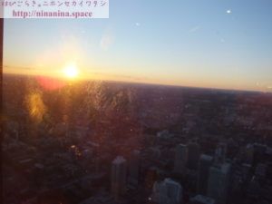 LookOut Levelから景色を眺めていると、トロントの街の奥で太陽が地平線に沈んでいきました。
