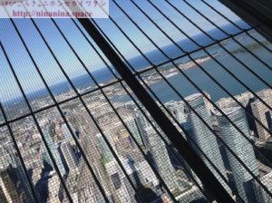 ガラスの床からは、MLBブルージェイズの本拠地・ロジャースセンターを見下ろせます。