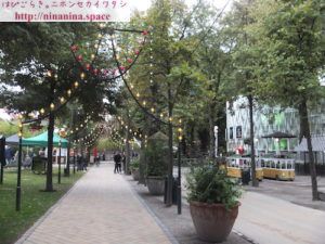 コペンハーゲン中央駅からは、駅舎のエントランスを出てすぐの横断歩道を渡れば、チボリにある2つの入場ゲートのうち、メインゲートじゃない方(メインゲートは、このまま道沿いに進み曲がったところにあります)の入場ゲートがあります。