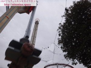 遊園地にはよくある空中ブランコのライドですが、高さがいかつい。