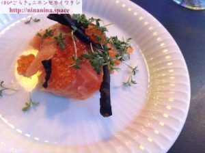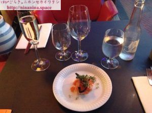 飲み物は白ワインのグラス、お料理は店員さんに「デンマークならではの料理が食べたいんです!」と伝えてオススメを教えてもらいました。