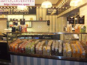 いろんなフレーバーのポップコーンが売られています。可愛い。