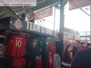 スタンド裏の通路には、オフィシャルグッズのショップや