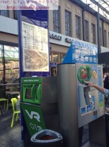 水色がトラムの自動券売機、手前の緑色のマシンがVRの自動券売機。